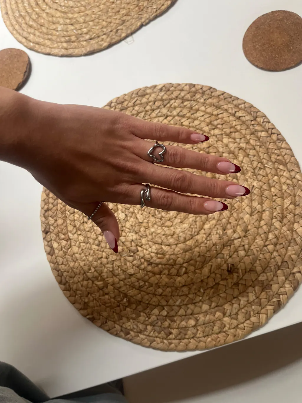 The Love ring is a statement ring with his irregular heart shape. You can wear it alone for a minimalist look or stack it together with other stacking rings. This ring is usually worn on the index, middle finger or ring finger.