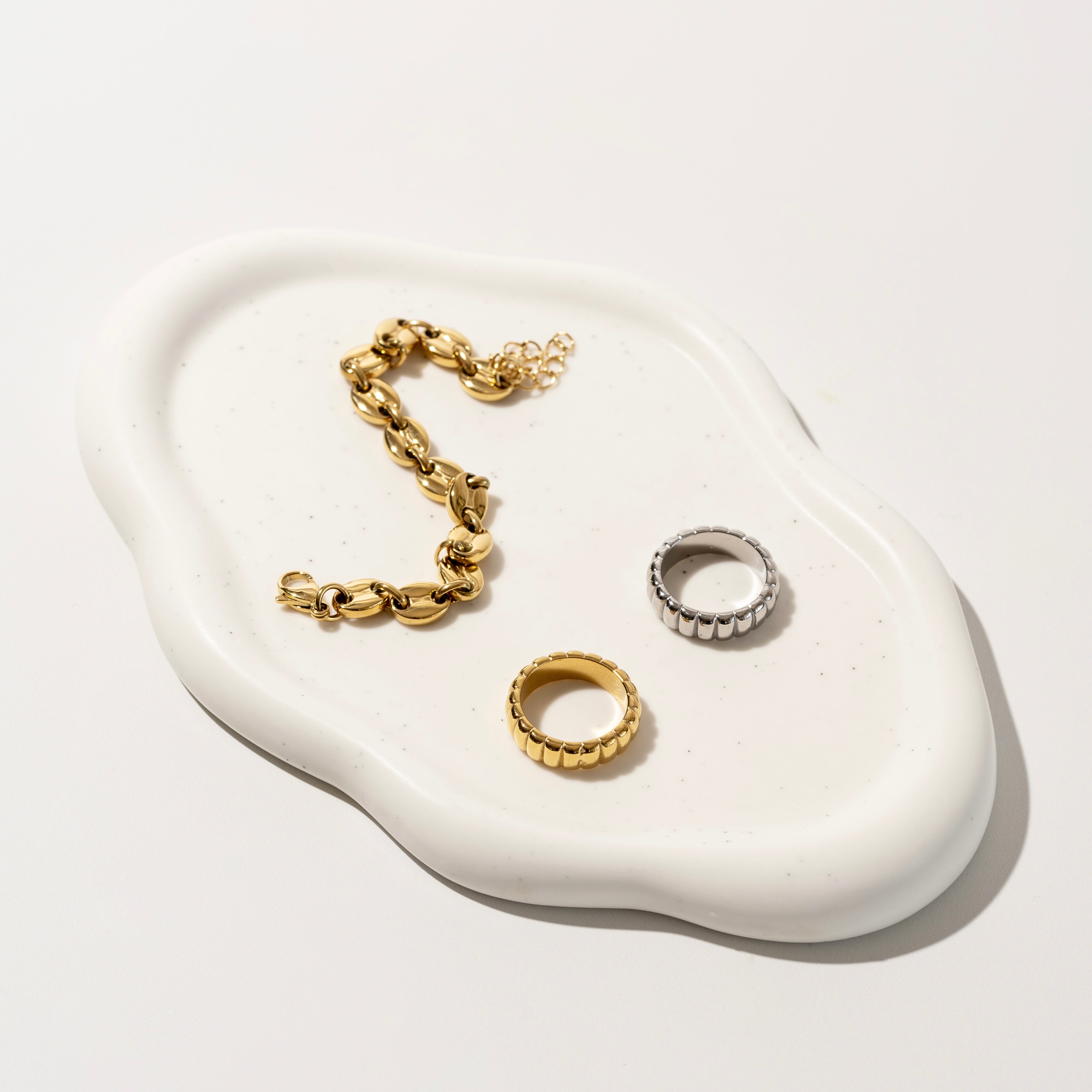 The Crown ring is a statement ring. You can wear it alone for a minimalist look or stack it together with other stacking rings. This ring is usually worn on the index or middle finger.