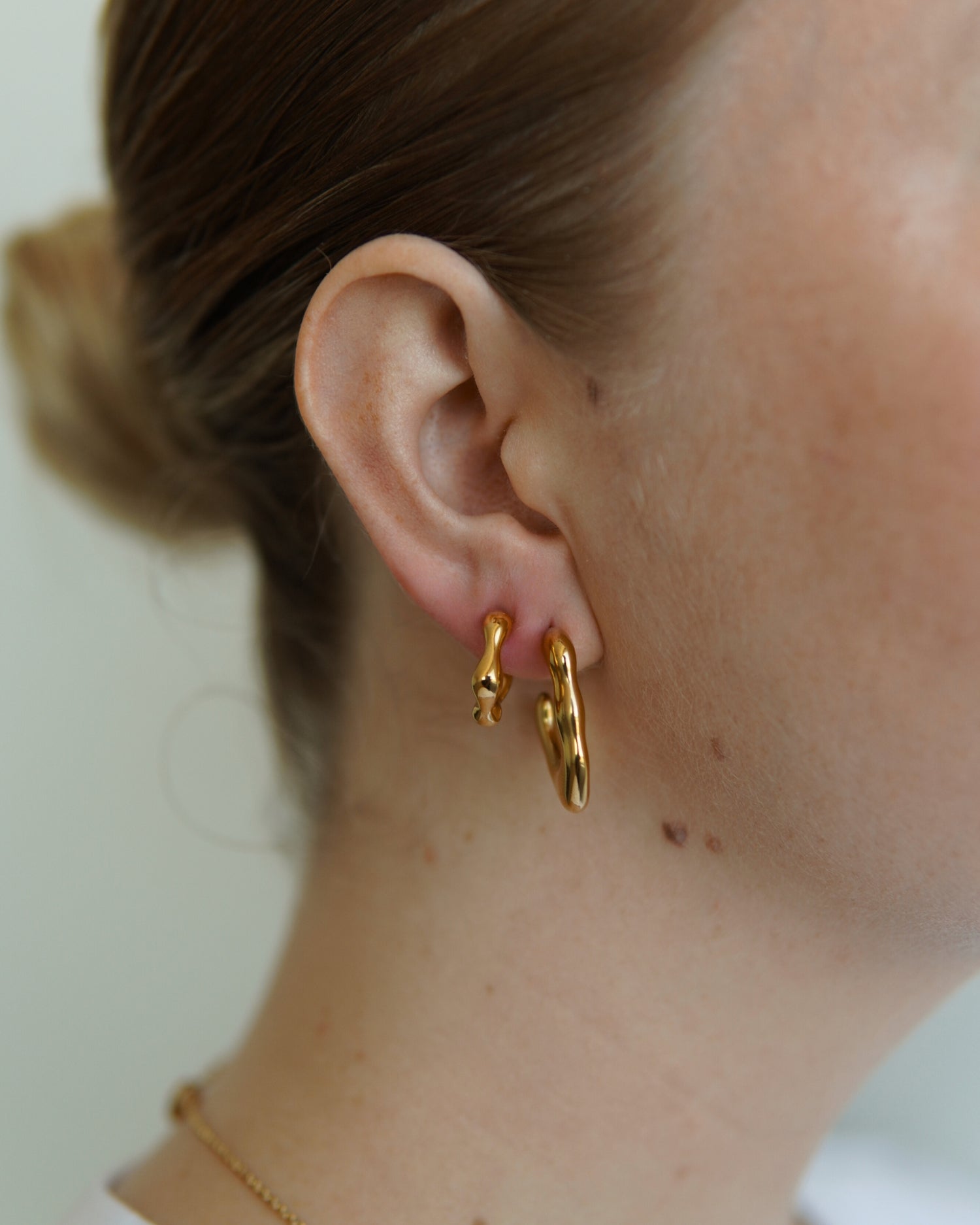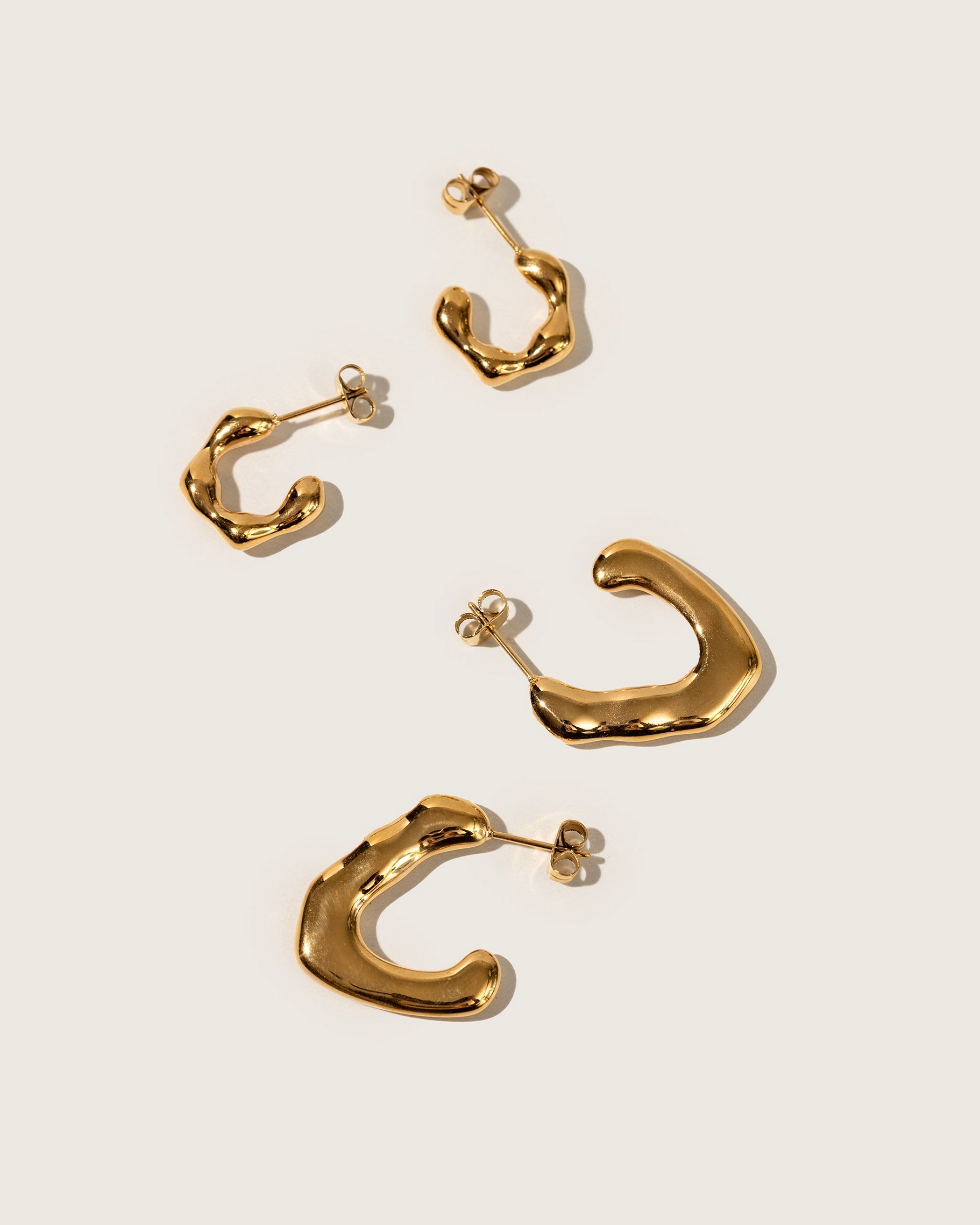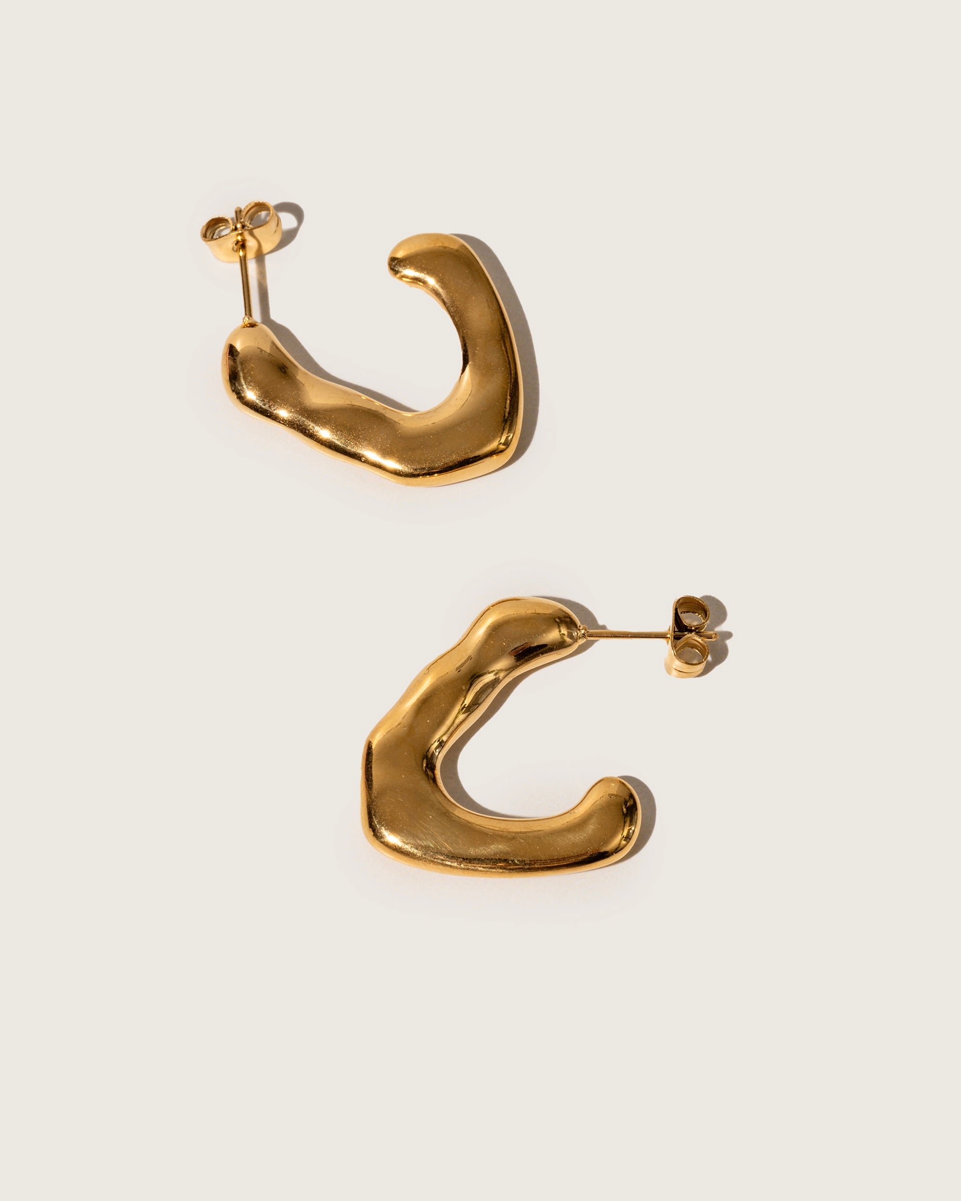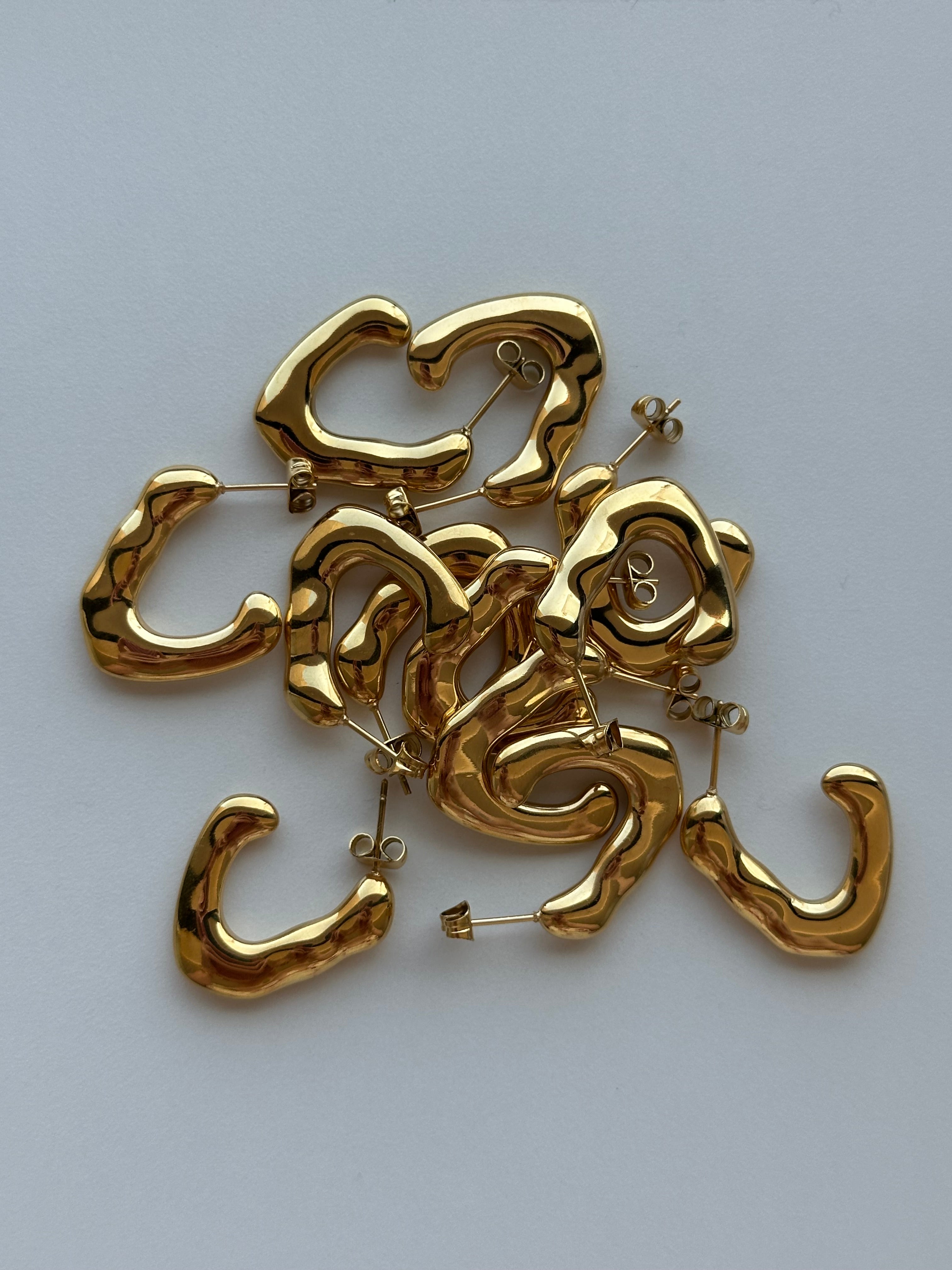 These earrings are quite big so perfect to make a statement and are unique with their irregular form. You can stack them with a simple hoop or the mini form earrings