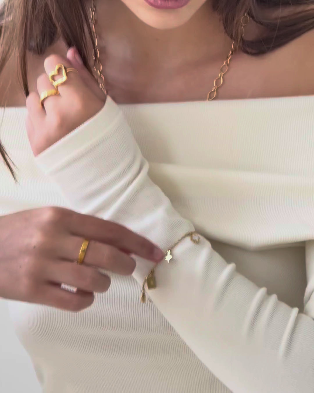 The Love ring is a statement ring with his irregular heart shape. You can wear it alone for a minimalist look or stack it together with other stacking rings. This ring is usually worn on the index, middle finger or ring finger.