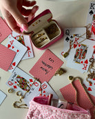Perfect for travelling or just to put in your room decor. LTJ is engraved inside the box. Material: beige velvet. Dimensions: 80 x 45 x 40 mm
