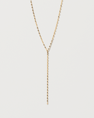 Elegant, minimalist, and designed to catch the light with every move — this delicate lariat necklace brings a soft, refined sparkle to any look. Its slender faceted chain creates a subtle shimmer, while the elongated drop adds a modern, flattering touch to the neckline.