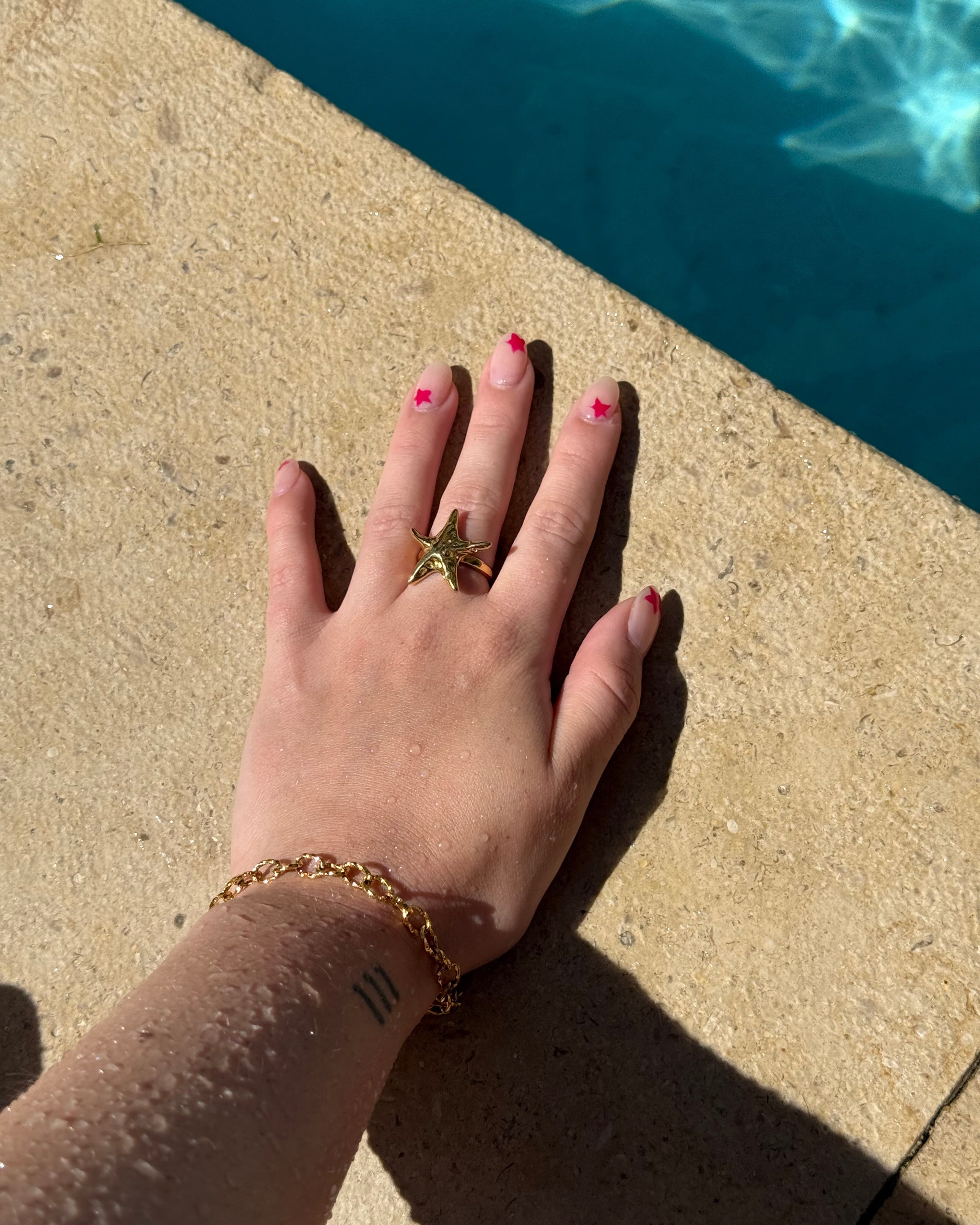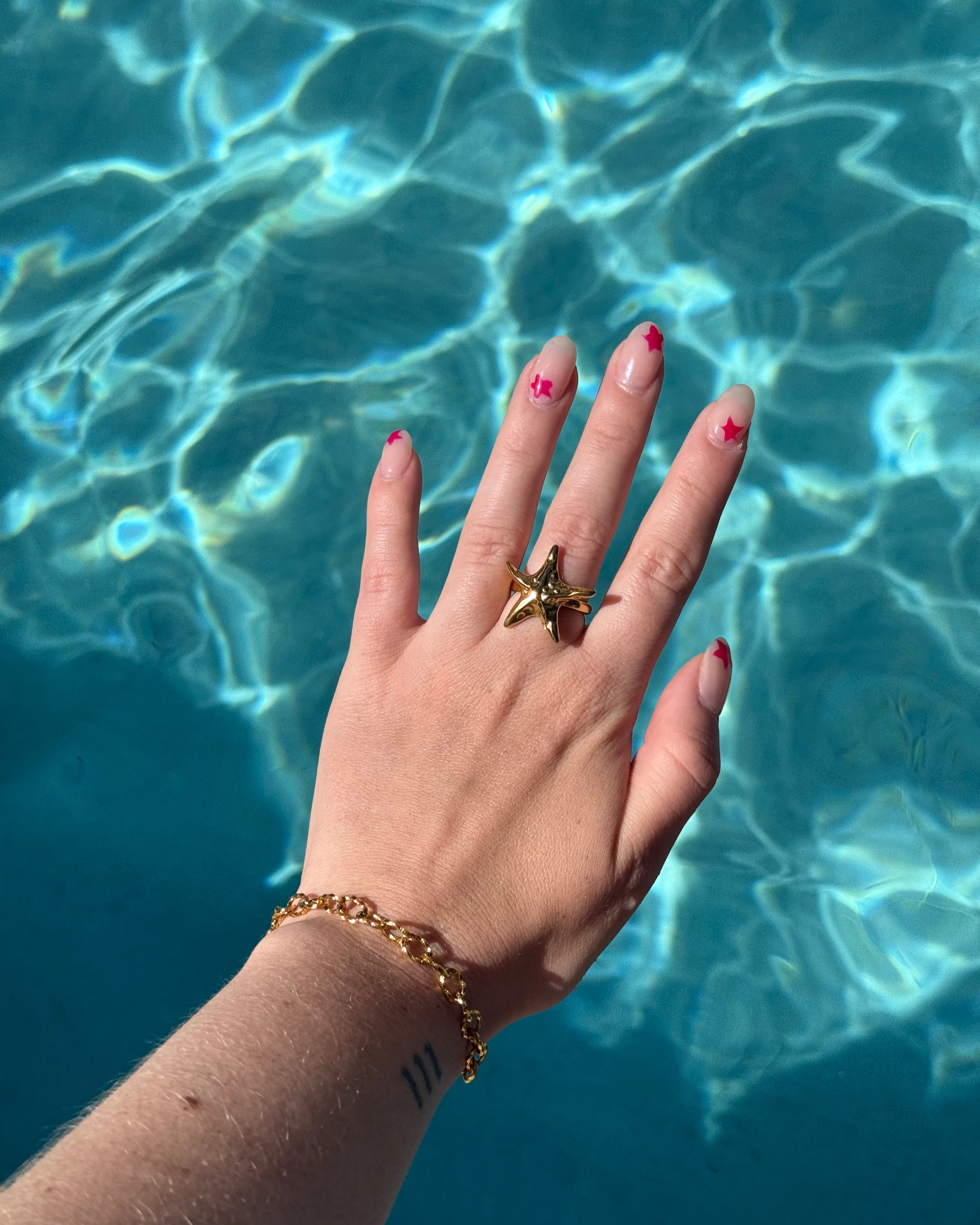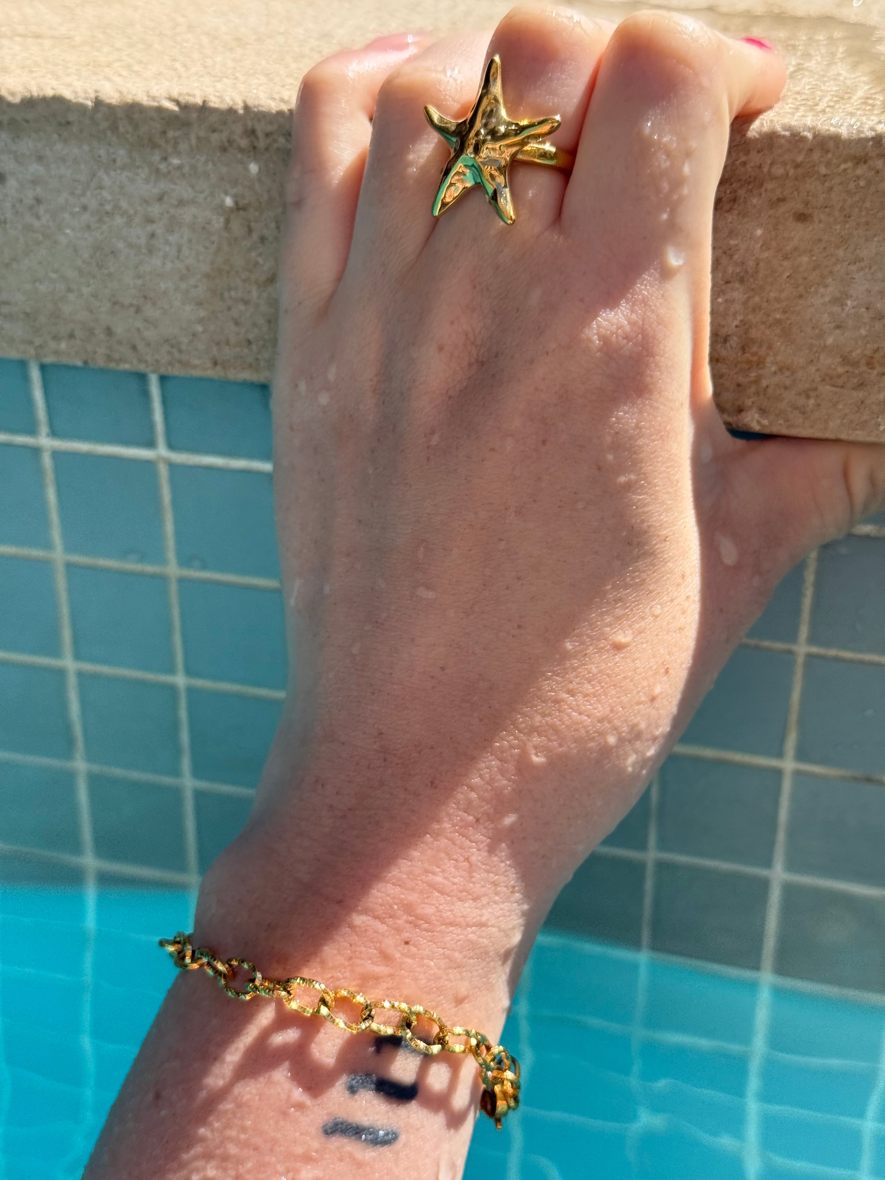 Inspired by the natural beauty of the sea, the Starfish ring brings a golden glow to your hand. With its textured design and sculptural silhouette, this piece feels like a treasure found in the sand. Wear it solo for a standout moment or stack it with your everyday rings for a beachy twist.