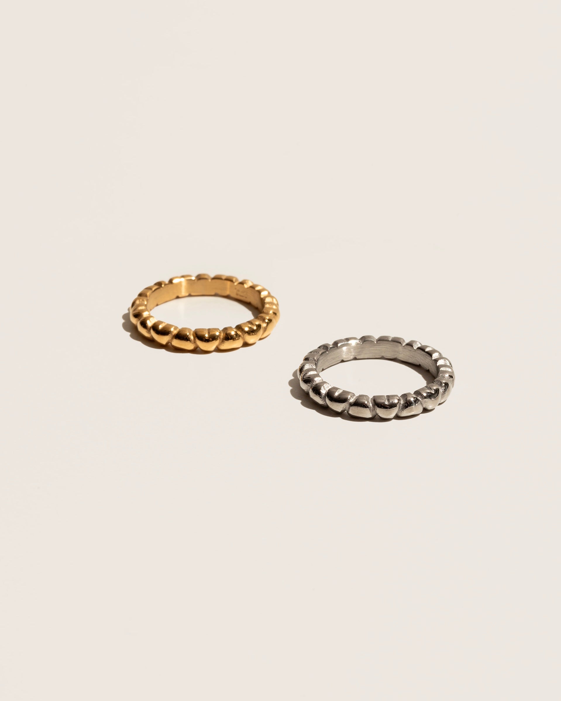 La bague d'adore représente l'amour sans fin, avec un design continu de cœurs connectés.