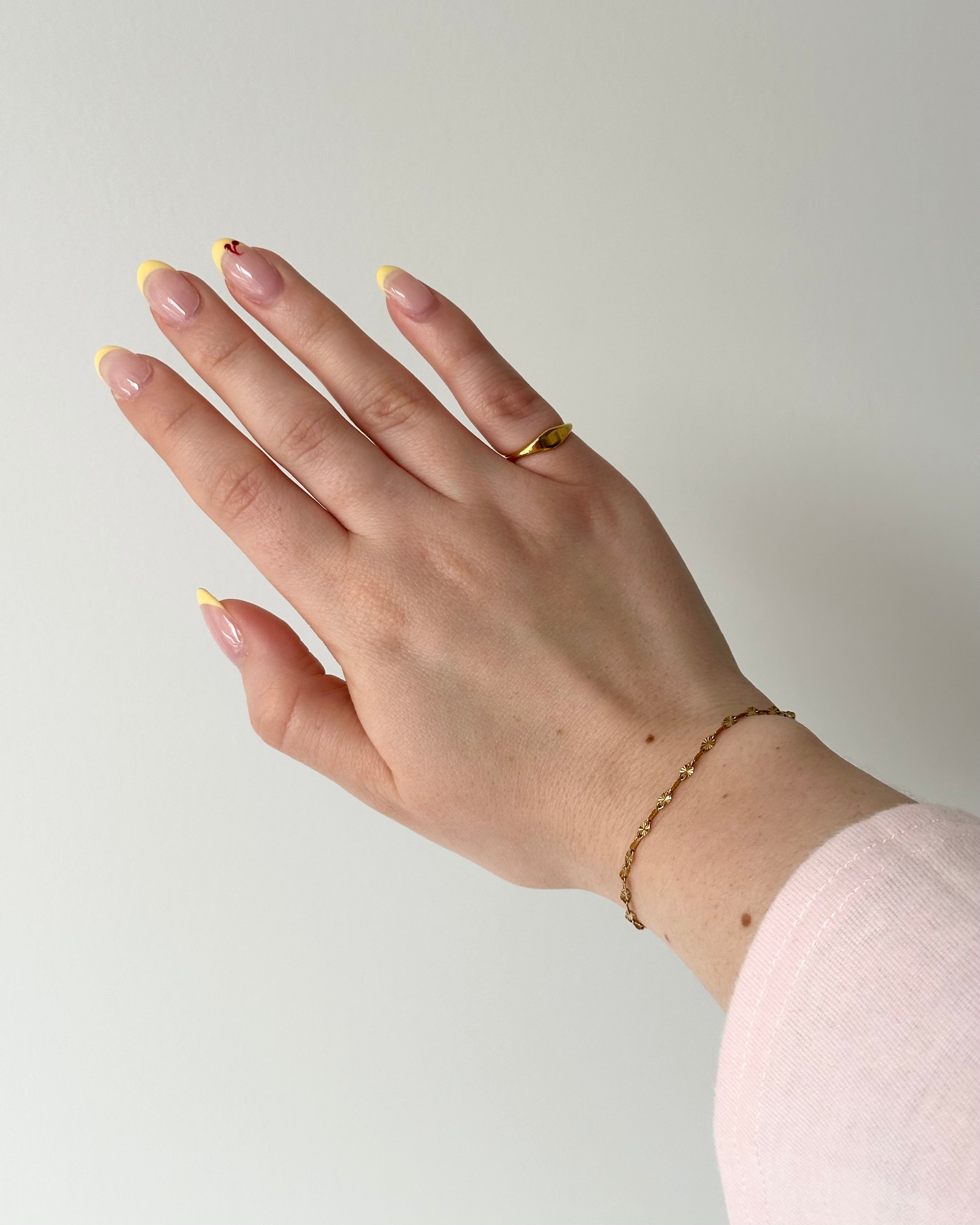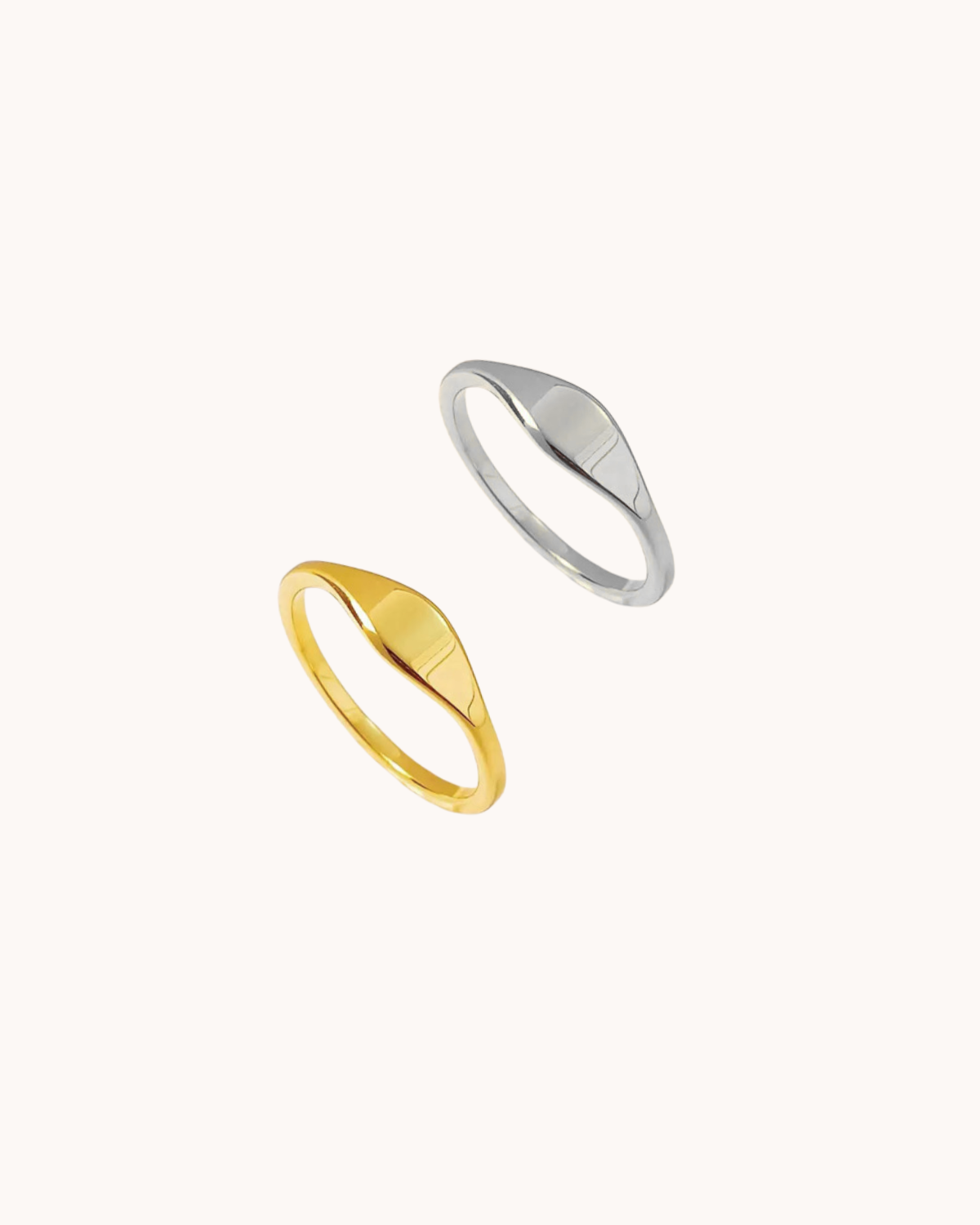 Cette bague est généralement portée sur le petit doigt et le pouce.