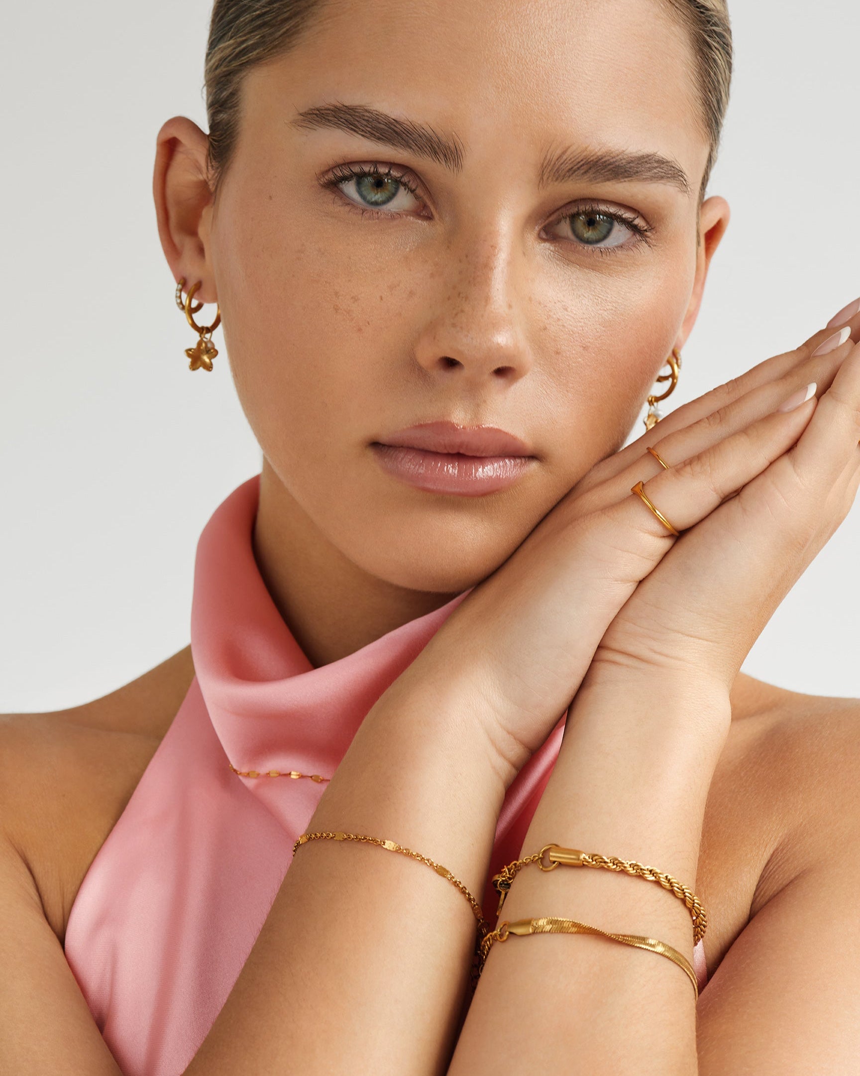 Vous pouvez porter tous nos bijoux dans l'eau et ceux-ci ne vont pas ternir. Pour garder le plaquage or le plus longtemps possible, vous devez éviter tout contact avec les produits chimiques et les surfaces abrasives (frottement). Si le contact avec les produits chimiques est répété ou le frottement excessif, les bijoux perdront leur brillance et cela endommagera sa couche protectrice.