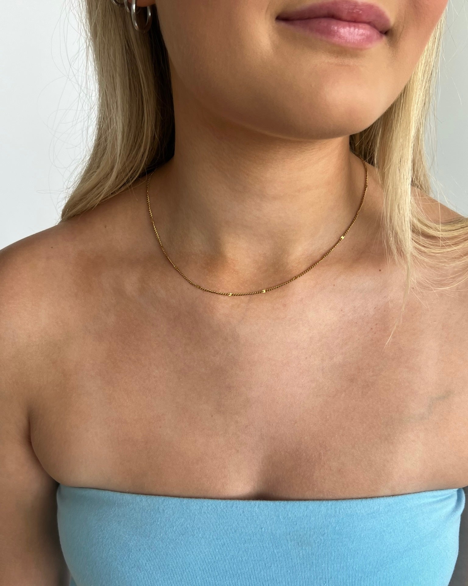 Chaîne simple en acier inoxydable plaqué or. La chaîne est basique et peut se porter avec tout. Disponible en or ou en argent, ce collier est un incontournable.