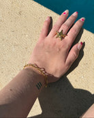 Vous pouvez porter tous nos bijoux dans l'eau et ceux-ci ne vont pas ternir. Pour garder le plaquage or le plus longtemps possible, vous devez éviter tout contact avec les produits chimiques et les surfaces abrasives (frottement). Si le contact avec les produits chimiques est répété ou le frottement excessif, les bijoux perdront leur brillance et cela endommagera sa couche protectrice.