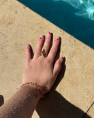 Vous pouvez la porter seul pour un look minimaliste ou l'empiler avec d'autres anneaux. Cette bague est généralement portée sur l'index, le majeur ou l'annulaire.
