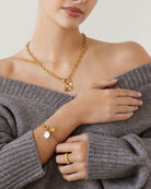 Vous pouvez porter tous nos bijoux dans l'eau et ceux-ci ne vont pas ternir. Pour garder le plaquage or le plus longtemps possible, vous devez éviter tout contact avec les produits chimiques et les surfaces abrasives (frottement). Si le contact avec les produits chimiques est répété ou le frottement excessif, les bijoux perdront leur brillance et cela endommagera sa couche protectrice.