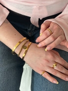 Vous pouvez porter tous nos bijoux dans l'eau et ceux-ci ne vont pas ternir. Pour garder le plaquage or le plus longtemps possible, vous devez éviter tout contact avec les produits chimiques et les surfaces abrasives (frottement). Si le contact avec les produits chimiques est répété ou le frottement excessif, les bijoux perdront leur brillance et cela endommagera sa couche protectrice.