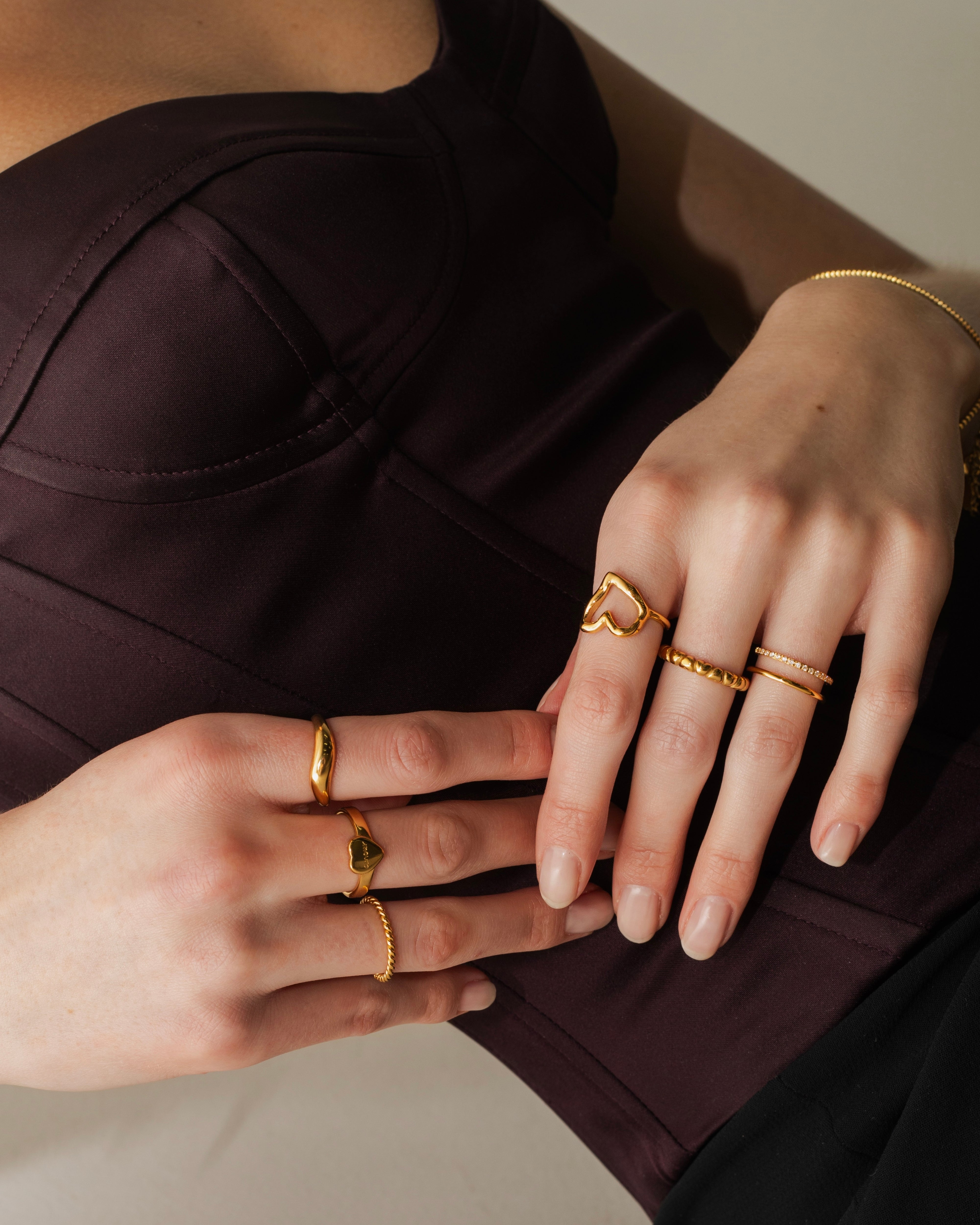 This swirl ring features a twisting design that adds a touch of sophistication making it the perfect statement piece for any occasion. Not to big, you can wear it alone for a minimalist look or stack it together with other stacking rings.