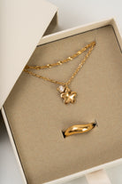 Vous pouvez porter tous nos bijoux dans l'eau et ceux-ci ne vont pas ternir. Pour garder le plaquage or le plus longtemps possible, vous devez éviter tout contact avec les produits chimiques et les surfaces abrasives (frottement). Si le contact avec les produits chimiques est répété ou le frottement excessif, les bijoux perdront leur brillance et cela endommagera sa couche protectrice.