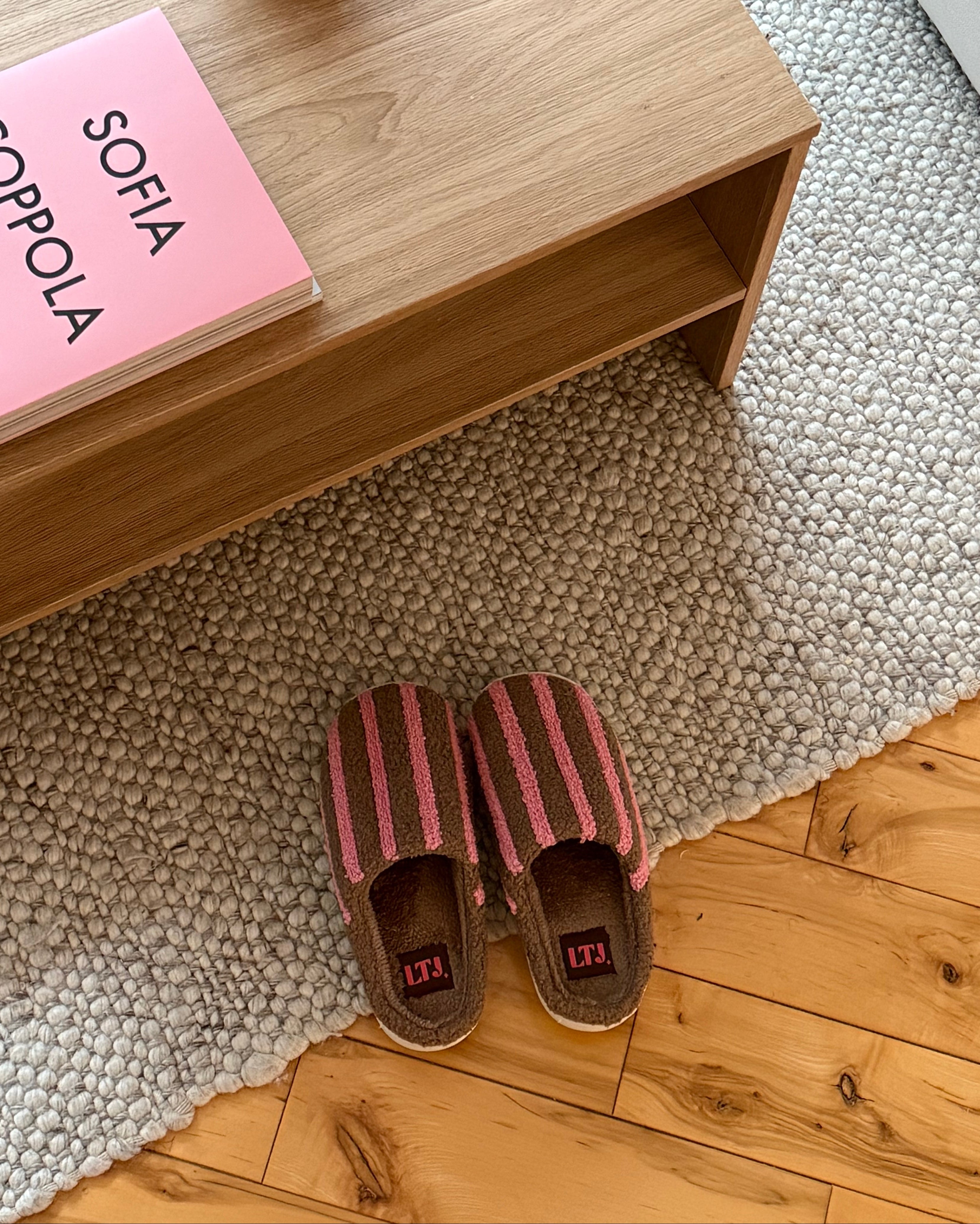 Striped Slippers – Mocha Pink