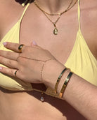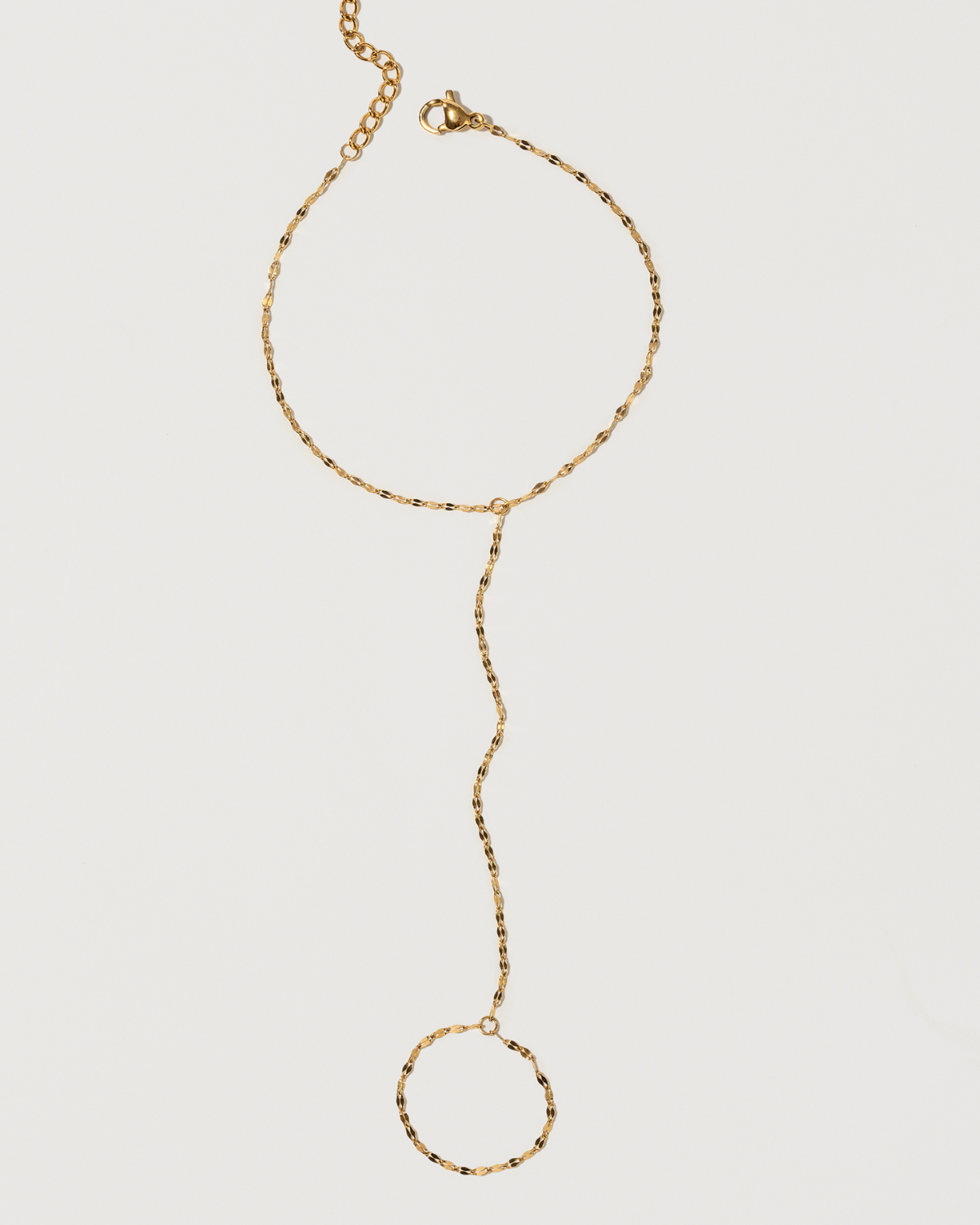 This elegant hand chain bracelet connects your wrist to your finger with a delicate gold chain. Designed for both style and comfort, it’s a modern piece that adds a unique touch to any outfit.