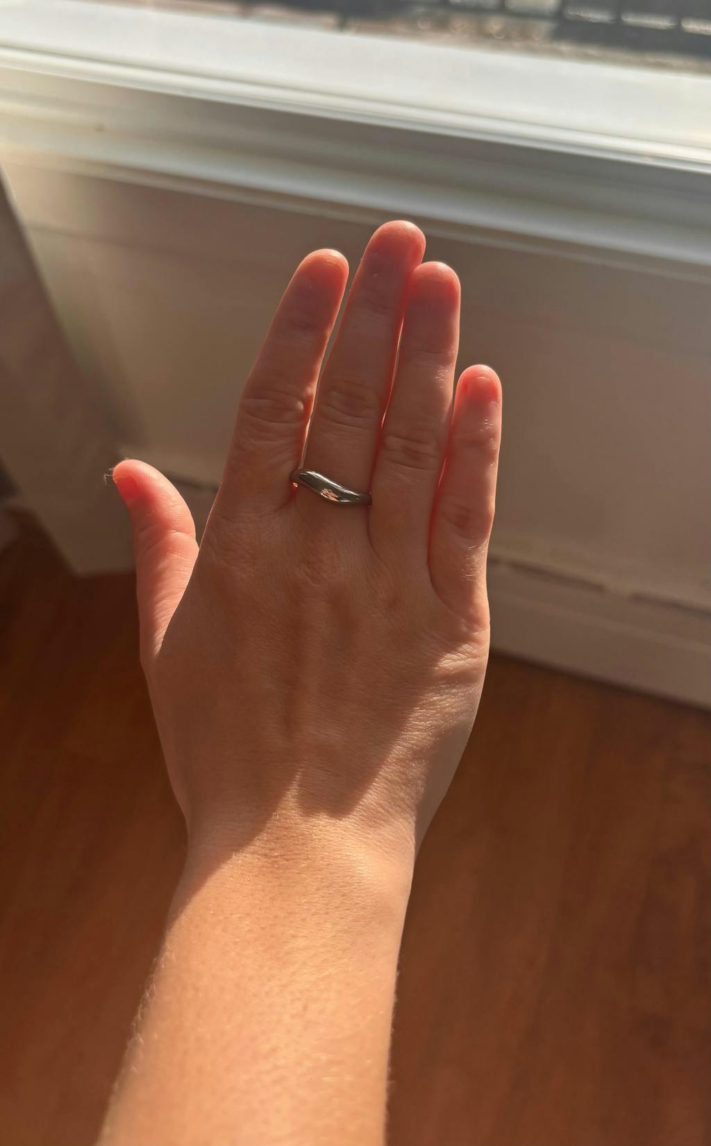 This swirl ring features a twisting design that adds a touch of sophistication making it the perfect statement piece for any occasion. Not to big, you can wear it alone for a minimalist look or stack it together with other stacking rings.